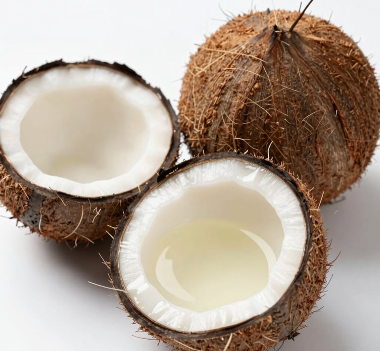 Cold-pressed coconut oil for skin, hair, and cooking.
